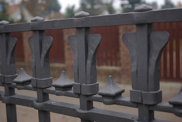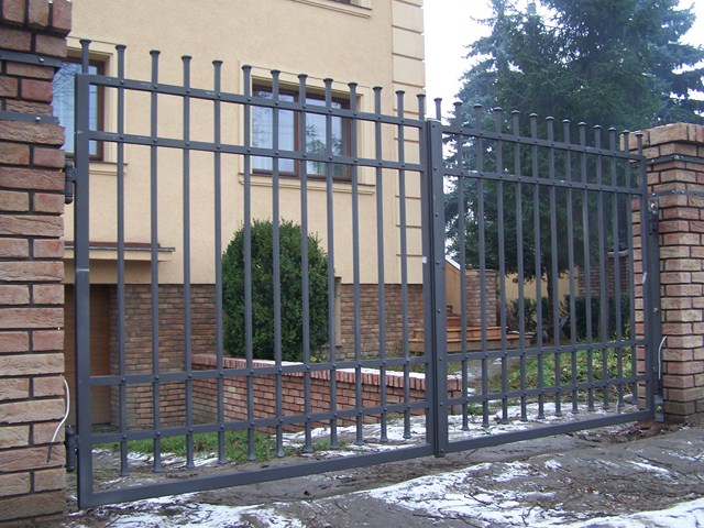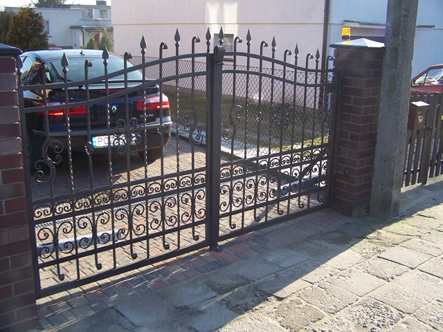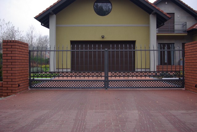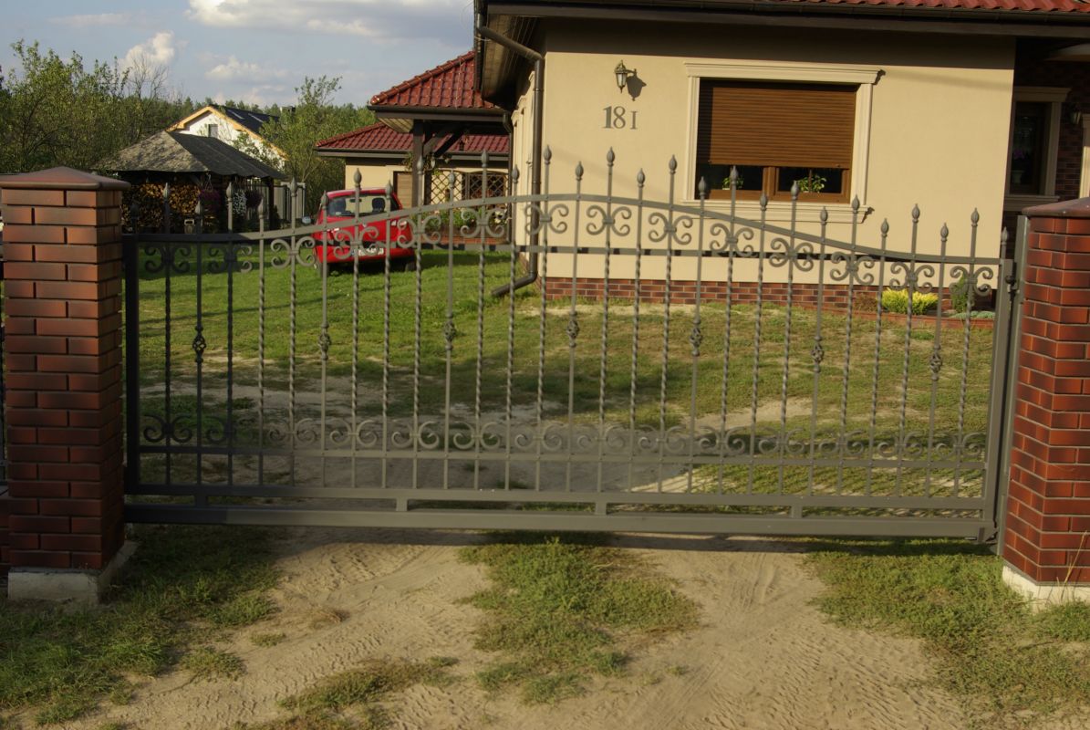 Brama przesuwna ozdobna z grotami na różnej wysokości